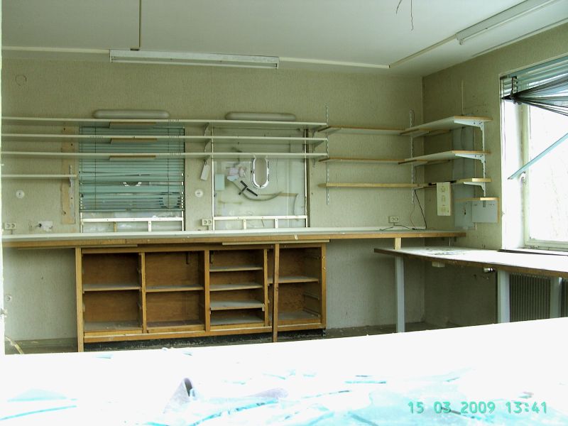 Die Baracke, die ab Juni 1945 als Empfangsgebäude fungierte, wurde während der Bauarbeiten zuerst versetzt, nach der Einweihung des Neubaus aber abgerissen. Es wäre möglich, dass sich ein kleiner Teil der Baracke bis in die heutige Zeit hinüber gerettet hat. Auf dem Bahngelände steht nämlich bis heute eine Baracke, die in Teilen ähnlichkeiten mit der damaligen aufweist.