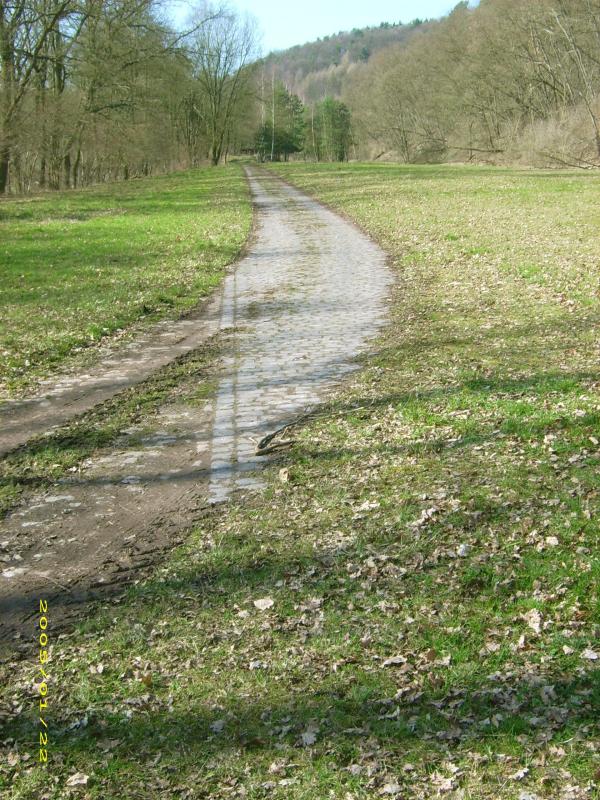 Der gepflasterte Weg begann etwa vor dem Güterschuppen und führte von hier aus bis zur Rampe des Freiladegleises bei km 68,8. Von dort führt er als unbefestigter Feldweg weiter bis zur Unterführung am Ende des noch gut erkennbaren Verbindungsgleises zwischen der Güterrampe und dem Streckengleis (bei km 68,85), wo sich das Begegnungsgleis bei km 68,9 wieder mit dem Streckengleis vereinte. Dieser Feldweg mündet in eine schmale Straße, der Memelweg ein, die von Schemmern her zum Mänzer Hof führt. Diese Straße führt als »Mausefalle«, wie auch die schmalen Unterführungen als Verkehrshindernis im Volksmund heißen, bei km 69,0 unter der Kanonenbahn hindurch.