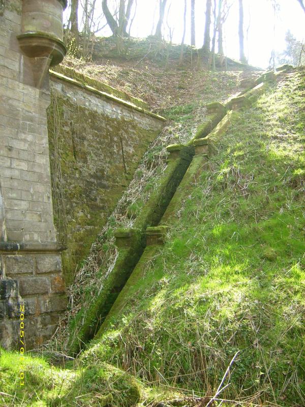 Die Widerlager und das Gewölbe bestehen aus Bruchstein-Mauerwerk mit hammergerecht bearbeiteten Verblendsteinen, sogenannte Moellons, und dazwischen in 1 Meter bis 1,30 Meter Abständen aus durchgehenden Quaderschichten.