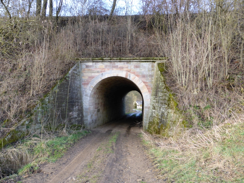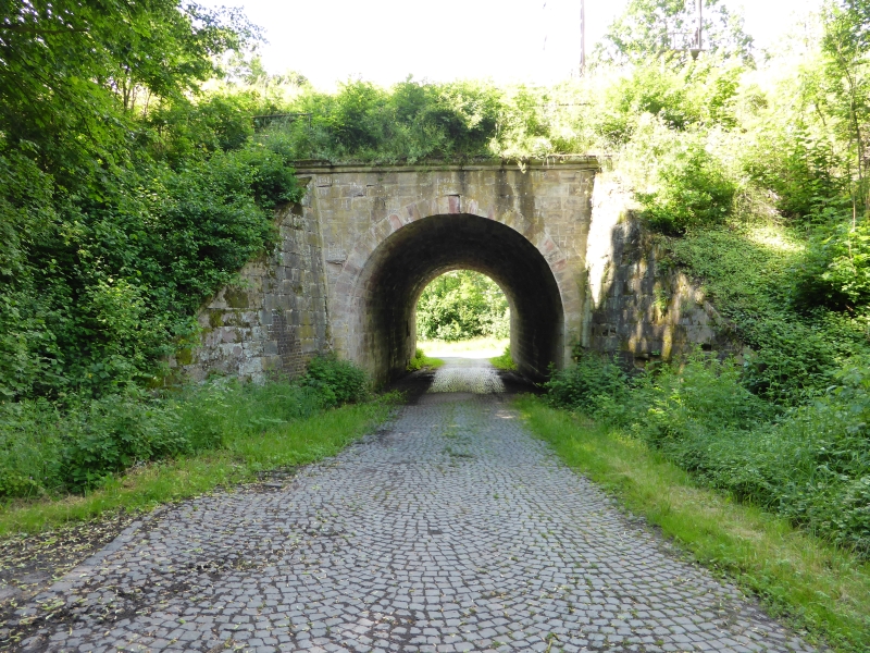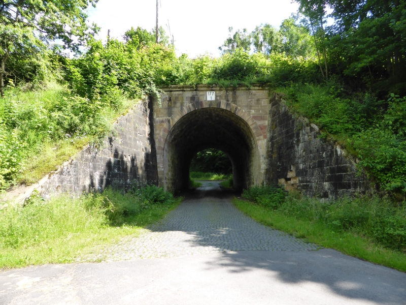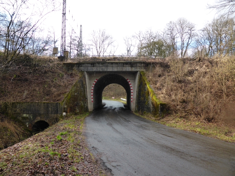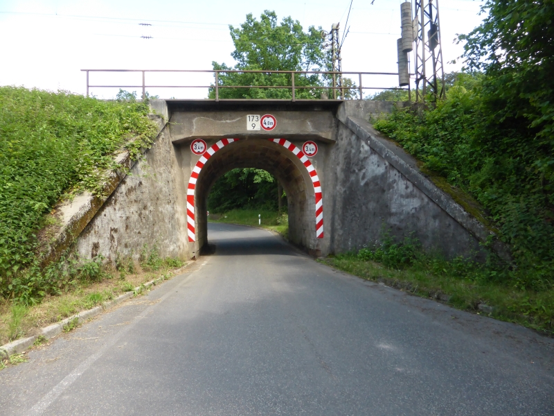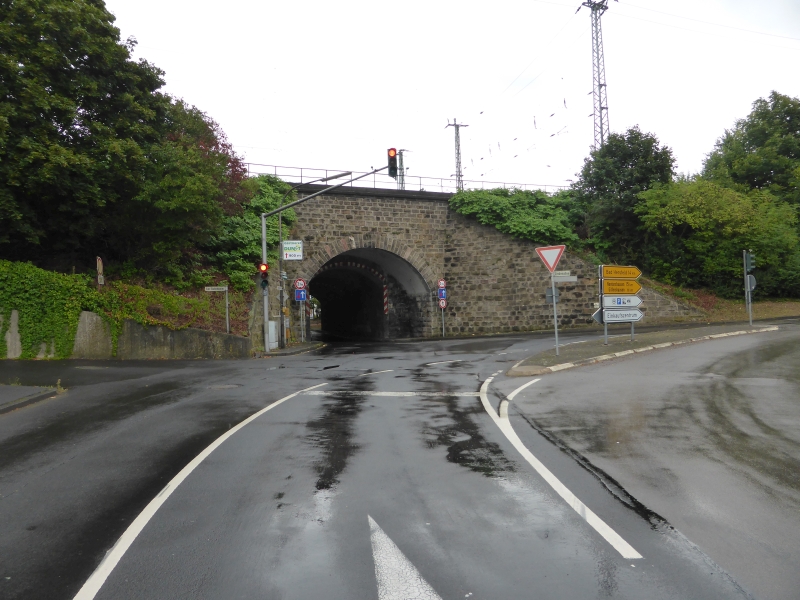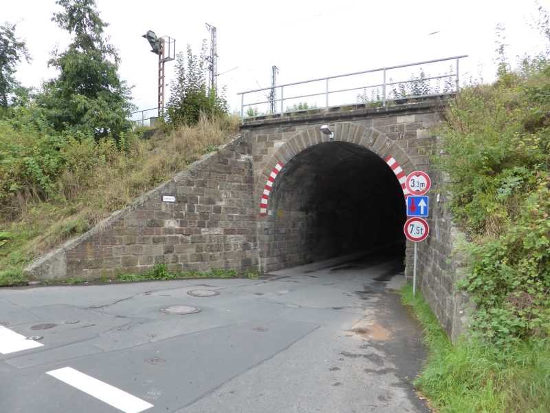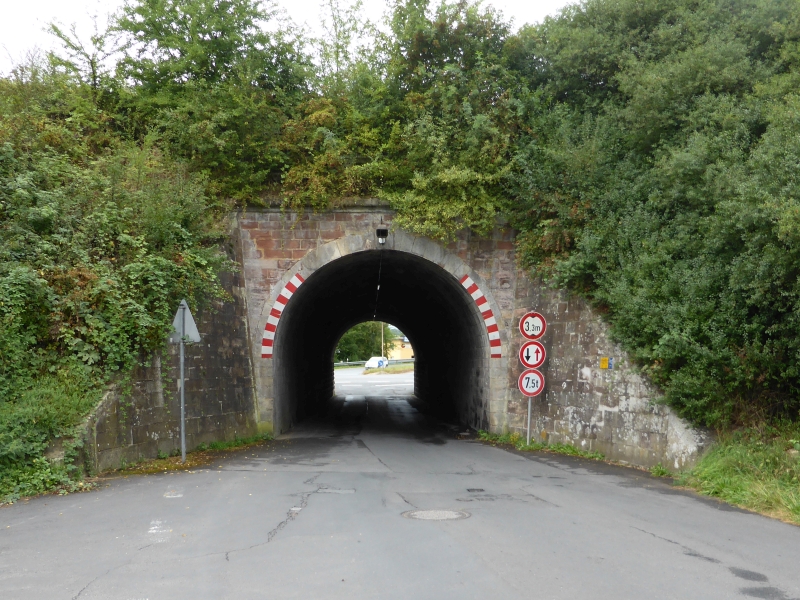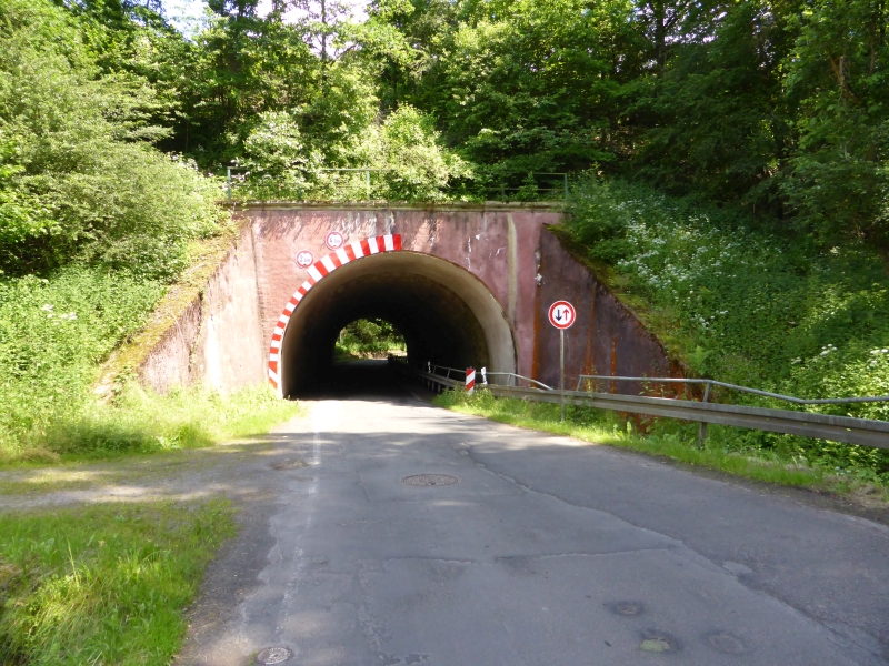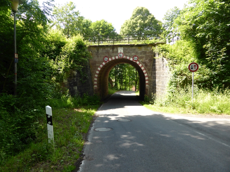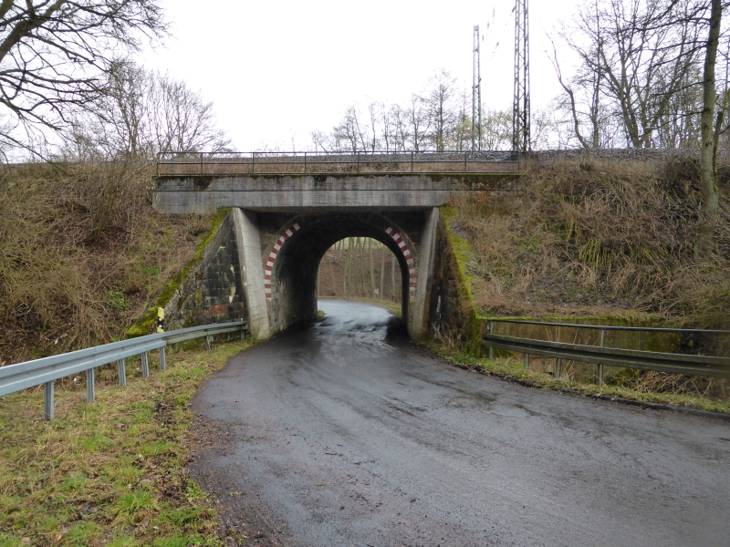 ![]() km 173,150: Unterführung der Braunhäuser Straße (K 56) in Gilfershausen, Westseite (Fotografiert im Juni 2016) |