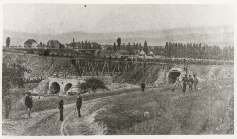 ![]() km 169,300: Bau der Unterführung der Göttinger Straße (ehemals B 27) und der Fußgängerunterführung mit Wasserdurchlass bei km 169,350 in Bebra (Fotografiert um 1874, Quelle: Stadtarchiv Bebra) |