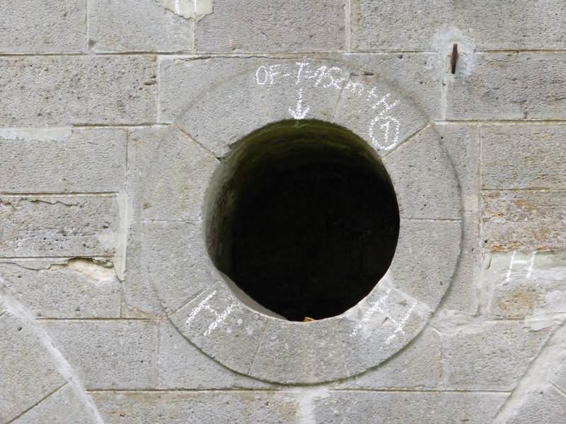 ![]() km 169,350: Fußgängerunterführung und Wasserdurchlass, Verzierung Ostseite (Fotografiert im September 2016) |