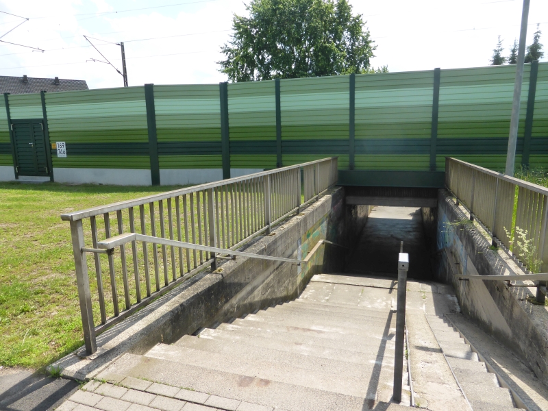 ![]() km 169,730: Fußgängerunterführung Franzosenstraße, Treppe auf Nordostseite (Fotografiert im Juni 2019) |