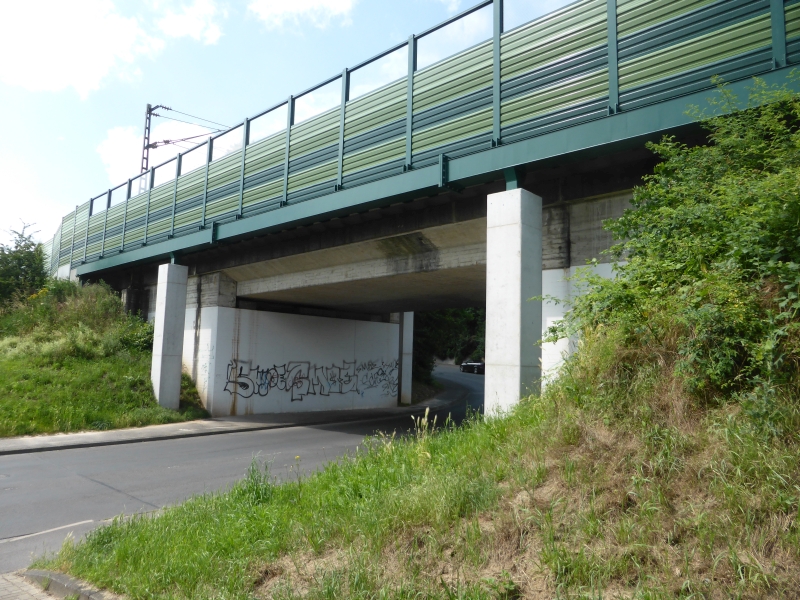 ![]() km 169,930: Brücke über die Goethestraße, Nordseite von Westen (Fotografiert im Juni 2019) |