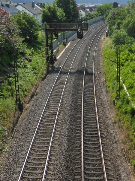 ![]() km 177,189: Signalbrücke für Gleiswechselbetrieb in Richtung Berg (Fotografiert im Juni 2016) |