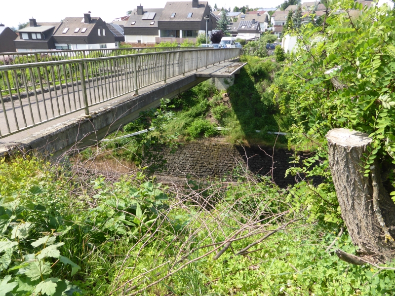 ![]() km 174,285: Blick nach Südosten auf der ehemaligen BWH-Brücke Im Sambach (Fotografiert im Juni 2019) |