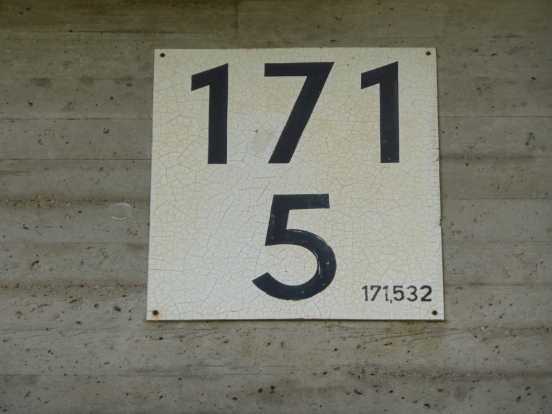 ![]() km 171,288: Schild an Feldwegunterführung, Südostseite (Fotografiert im Juni 2019) |