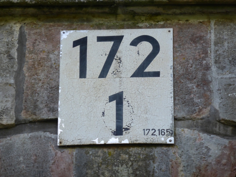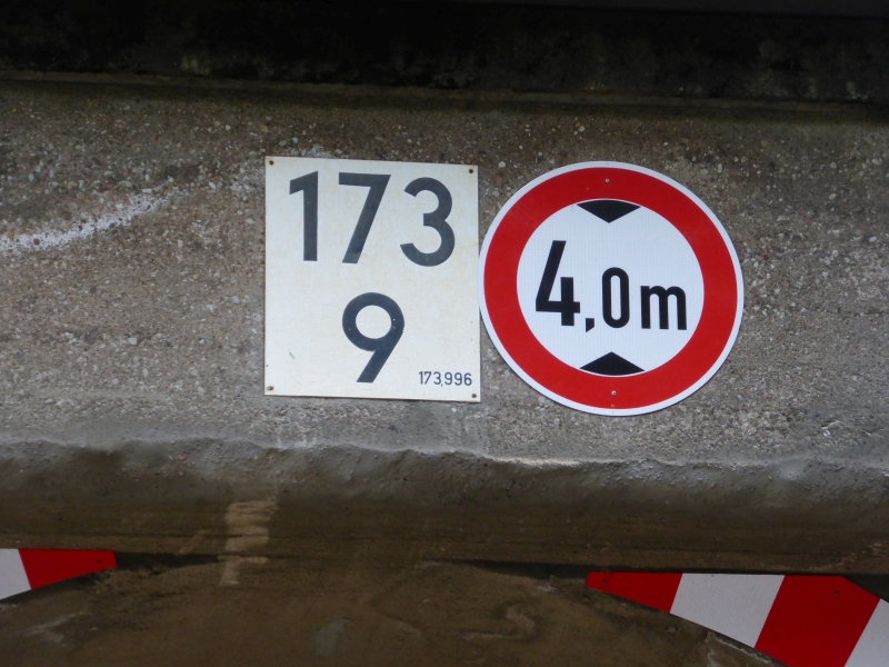 ![]() km 172,165: Schild an Feldwegunterführung, Ostseite (Fotografiert im Juni 2019) |