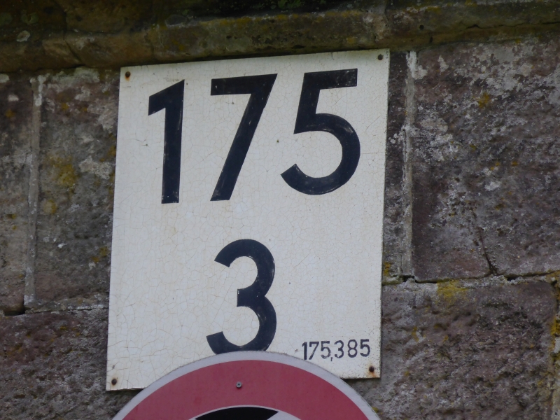 ![]() km 175,385: km-Schild an Unterführung Neßbergstraße in Asmushausen (Fotografiert im Juni 2016) |