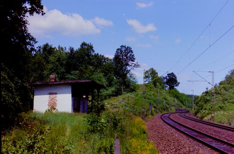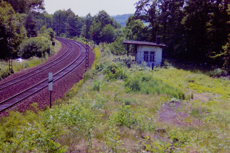 ![]() km 175,470: Ehemaliger Haltepunkt Asmushausen, Blick nach Süden (Fotografiert um 1985) |