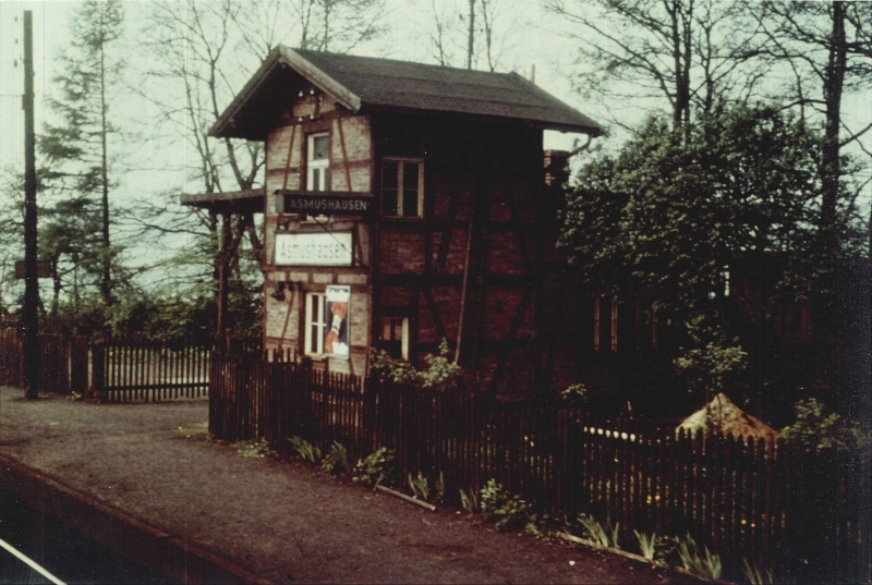 ![]() km 175,470: Ehemaliger Haltepunkt Asmushausen, Westseite (Fotografiert um 1985) |