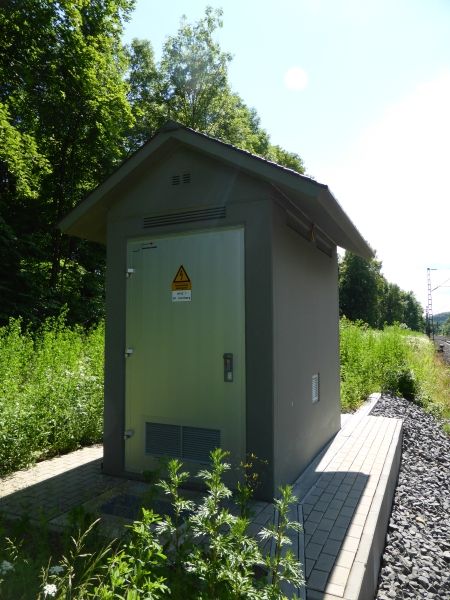 ![]() km 177,000: Betonschalthaus für Gleiswechselbetrieb südlich des Cornberger Tunnels (Fotografiert im Juni 2016) |