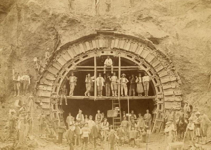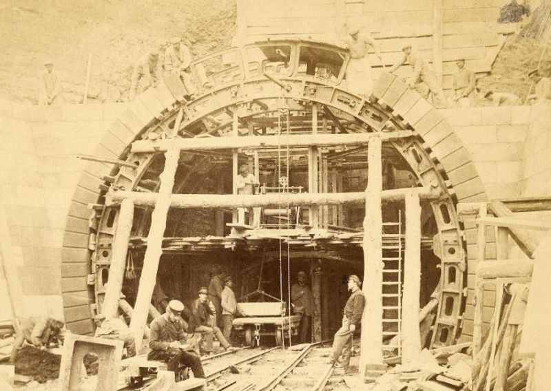 ![]() km 178,530: Bau des Cornberger Tunnels, Nordportal in 1872 (Sammlung: Architekturmuseum TU Berlin) |