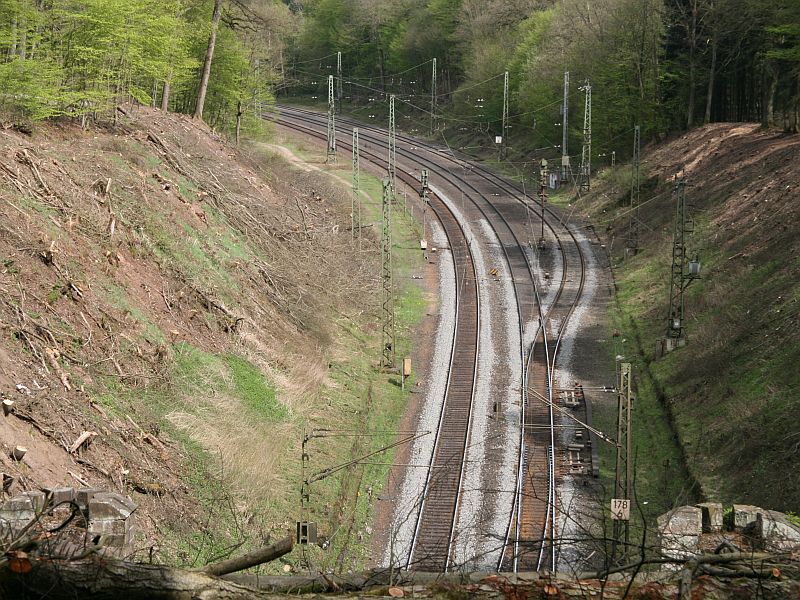 ![]() km 178,530: Blick auf den Betriebsbahnhof Cornberg vom Nordportal des Cornberger Tunnels (Fotografiert im April 2014 von Daniel Schick) |