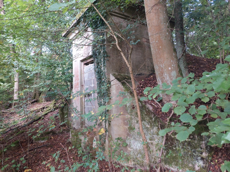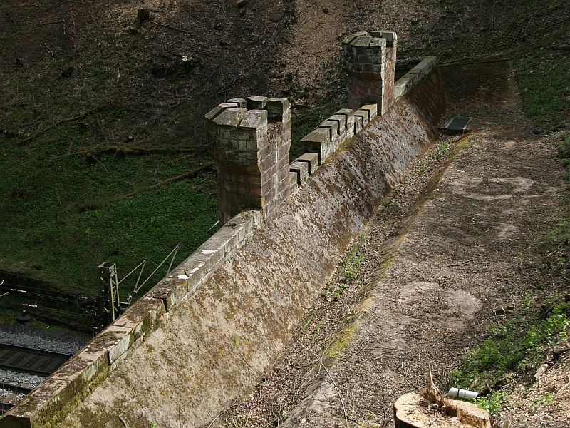 ![]() km 178,770: Oben am Hang befindet sich das Reichsbahnwasserwerk, erbaut 1931. Das Wasserwerk sowie die Wassertreppe werden wohl im Zuge des geplanten Neubaus der zweiten Röhre vom Cornberger Tunnel weichen müssen. Ende 2024 werden wohl die ersten Rodungsarbeiten erfolgen. (Fotografiert im September 2024) |