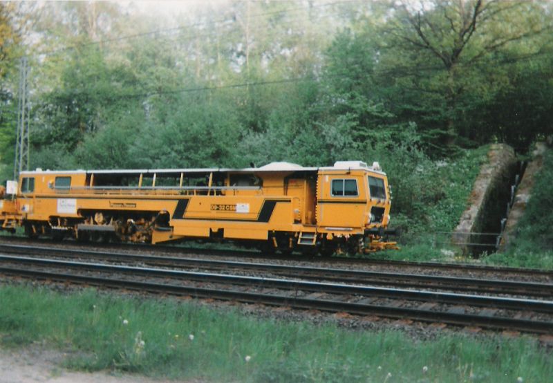 ![]() km 178,770: Gleisbaumaschine an der Wassertreppe zum Durchlass im Bahnhof Cornberg (Fotografiert in 1994) |