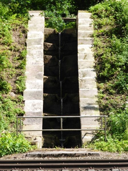 ![]() Wassertreppe am Reichsbahnwasserwerk, Fortführung im nächsten Bild (Fotografiert im September 2024) |