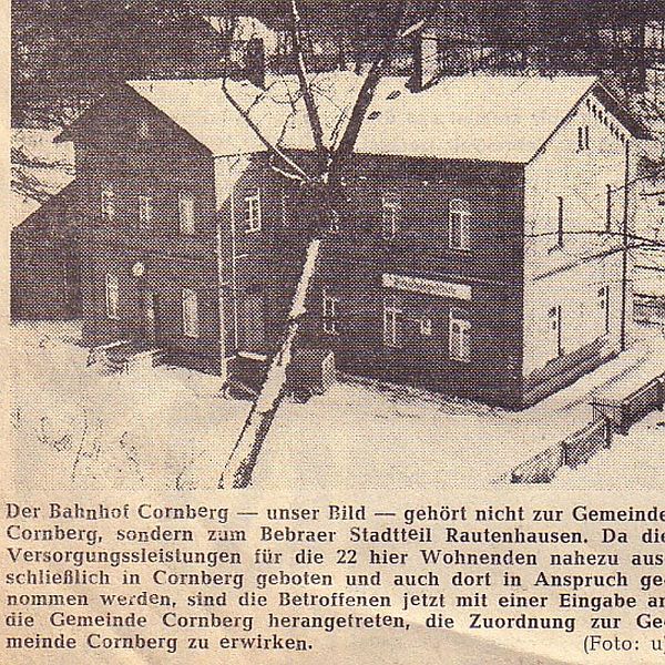 ![]() km 178,840: Ehemaliges Bahnhofsgebäude von Cornberg, Westseite (Fotografiert in 1961, Sammlung Mario Darmann: Ton- und Rundfunk-Museum) |