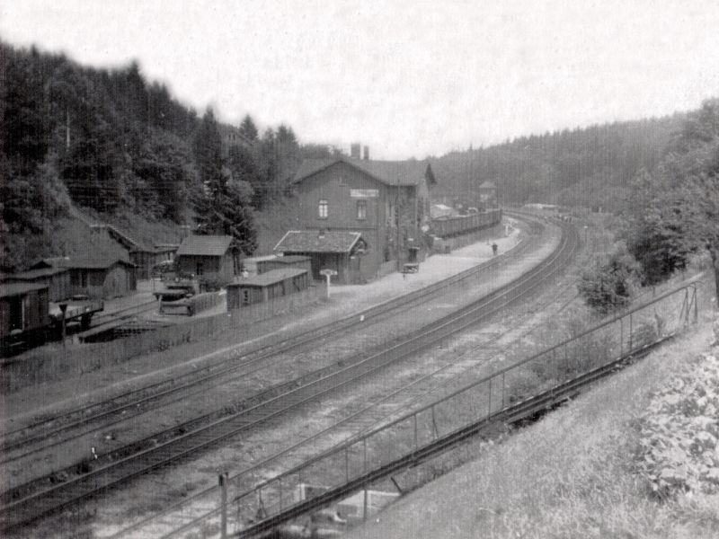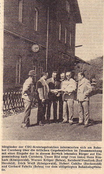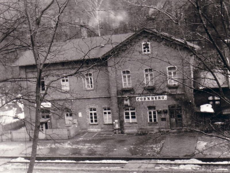 ![]() km 178,840: Ehemaliges Bahnhofsgebäude von Cornberg, Westseite (Fotografiert in den 1950er Jahren, Sammlung Mario Darmann: Ton- und Rundfunk-Museum) |