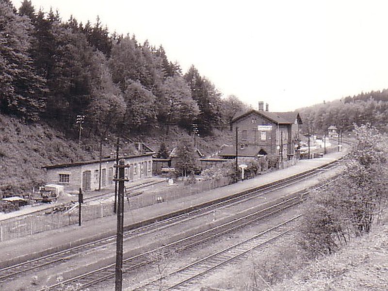 ![]() km 175,470: Ehemaliger Haltepunkt Asmushausen, Blick nach Norden (Fotografiert um 1985) |