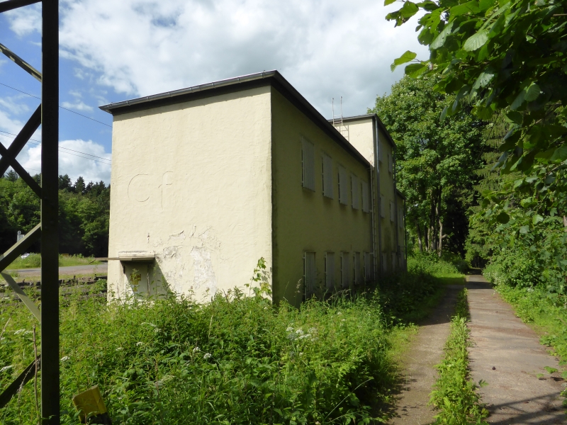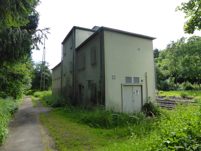 ![]() km 179,050: Stellwerk Cornberg, Nordostseite mit dem Anbau für das Notstomaggregat (Fotografiert im Juni 2016) |