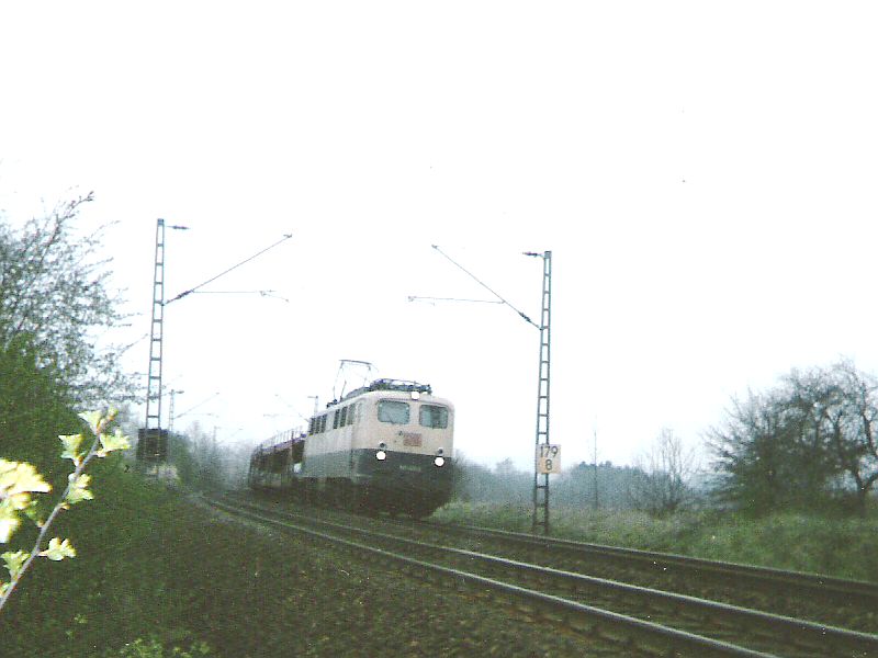 ![]() km 179,800: Güterzug von Sontra fährt auf falschem Gleis kurz vorm Bahnhof Cornberg (Fotografiert in 1985) |
