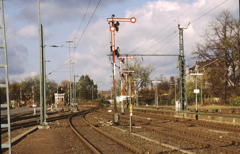 ![]() km 12,921: Bahnübergang Ochshäuser Straße, Blickrichtung Südosten, im Hintergrund Einfahrsignal (Fotografiert im November 2018) |