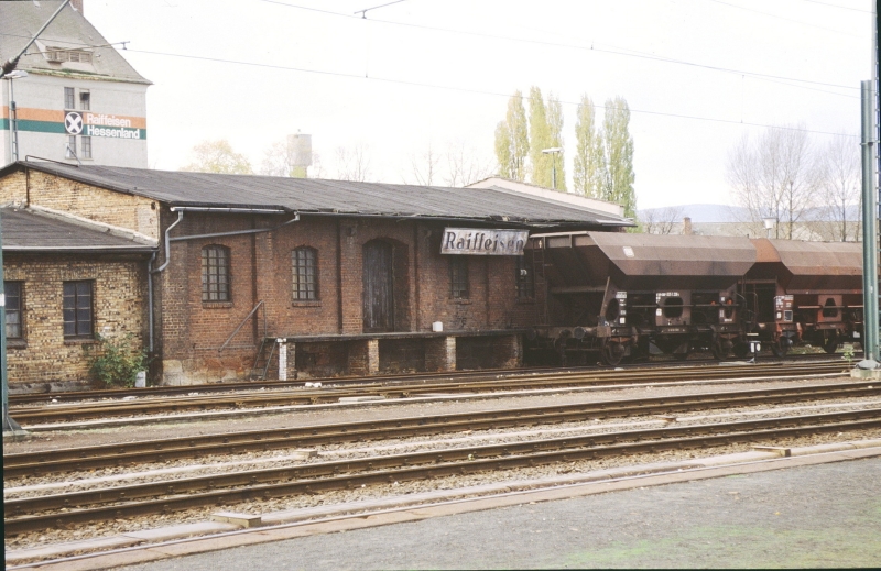 ![]() km 12,014: Raiffeisen-Güterschuppen im Bahnhof Bettenhausen (Fotografiert von Frank Naumann im Oktober 1988) |