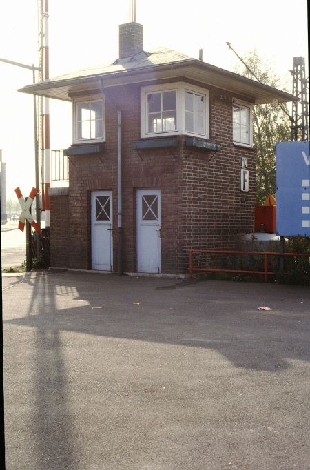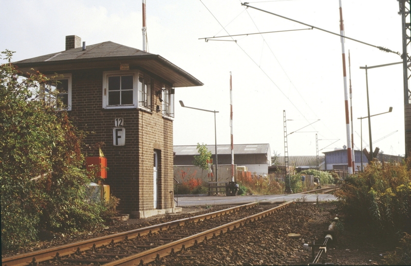 ![]() km 12,921: Schrankenwärter-Posten 12, Ochshäuser Straße, Blickrichtung Südosten (Fotografiert von Frank Naumann im Oktober 1986) |