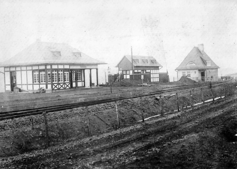 ![]() km 11,000: Bahnhof Trubenhausen mit Toilettengebäude, Südseite (Fotografiert in 1915 von Ernst Schlie / Sammlung Dr. D. Ahlborn) |