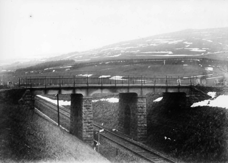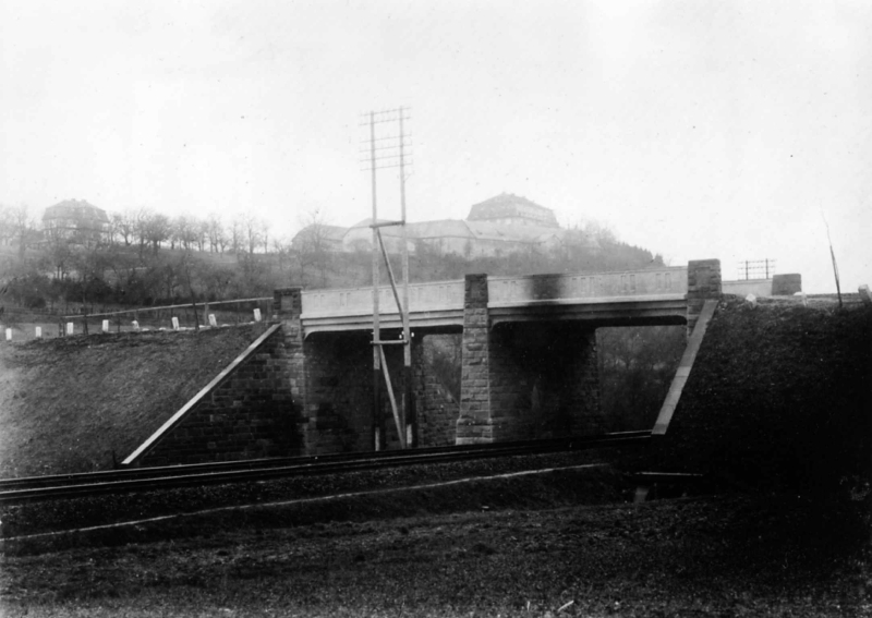 ![]() km 0,910: Brücke der K 43 über die Gelstertalbahn, Südwestseite (Fotografiert in 1915 von Ernst Schlie / Sammlung Dr. D. Ahlborn) |