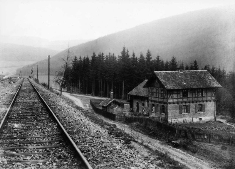 ![]() km 8,880: Viadukt Uengsterode km 8,830: Haltepunkt Uengsterode, Nordostseite (Fotografiert in 1915 von Ernst Schlie / Sammlung Dr. D. Ahlborn) |