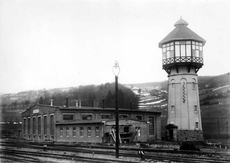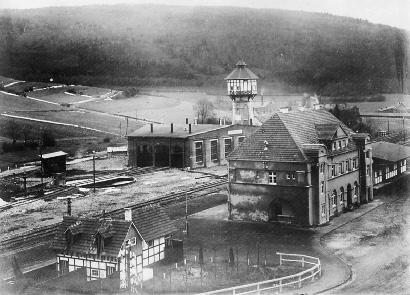 ![]() km 6,610: Bahnhof Großalmerode Ost, Bahnbetriebswerk, Nordwest- seite (Fotografiert in 1915 von Ernst Schlie / Sammlung Dr. D. Ahlborn) |