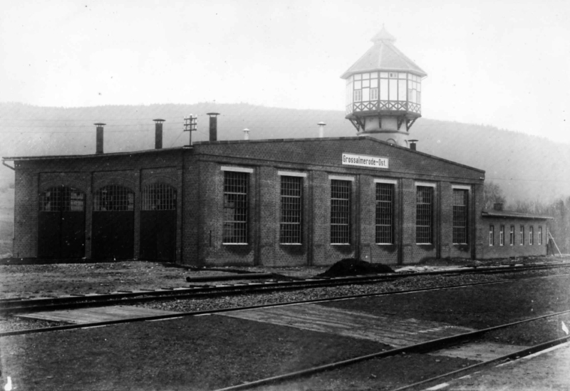 ![]() km 6,610: Bahnhof Großalmerode Ost, Bahnbetriebswerk, Südost- seite (Fotografiert in 1915 von Ernst Schlie / Sammlung Dr. D. Ahlborn) |