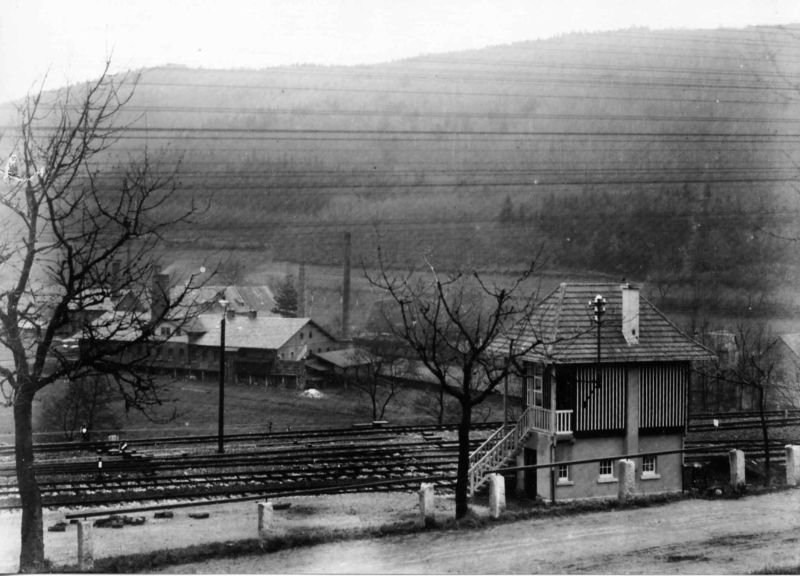 ![]() km 6,610: Bahnhof Großalmerode Ost, Stellwerk (Bezeichnung unbekannt) (Fotografiert in 1915 von Ernst Schlie / Sammlung Dr. D. Ahlborn) |