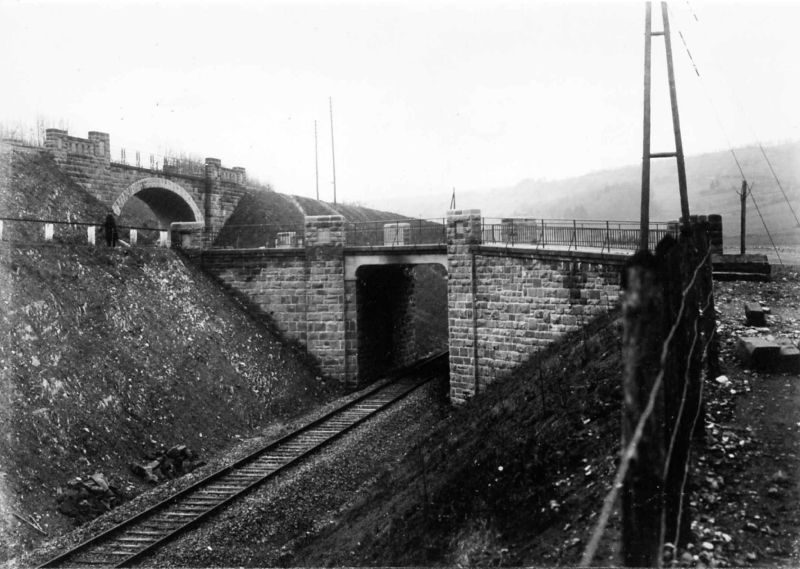 ![]() km 4,800: Nordostportal des Albsliede-Tunnels (Fotografiert in 1915 von Ernst Schlie / Sammlung Dr. D. Ahlborn) |