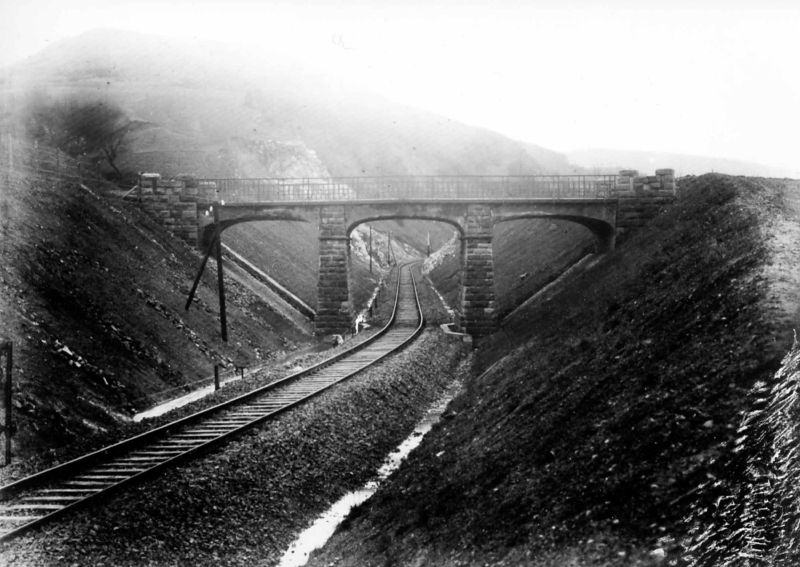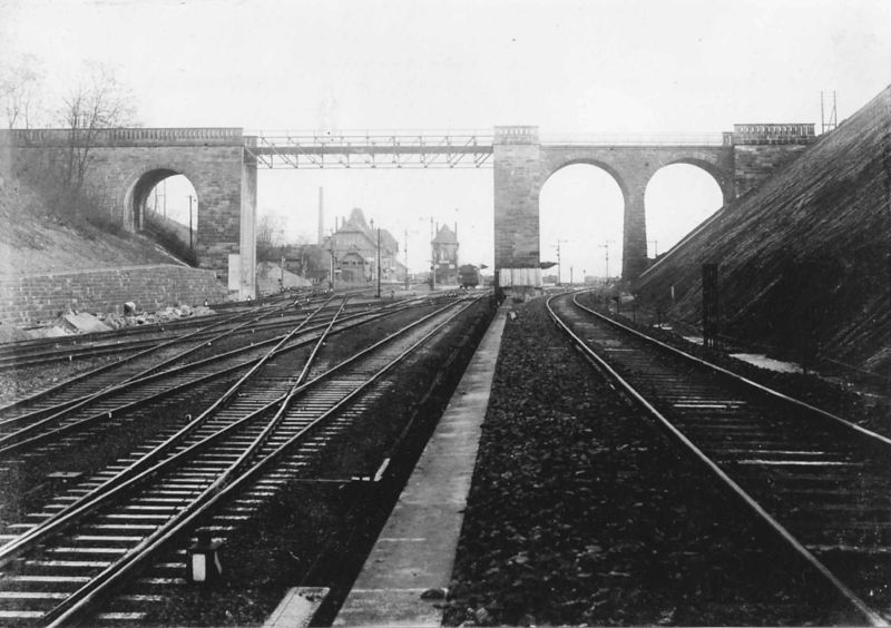 ![]() km 19,544: Brücke hohler Weg mit Blick auf den Bahnhof Witzenhausen Süd, Nordostseite (Fotografiert in 1915 von Ernst Schlie / Sammlung Dr. D. Ahlborn) |