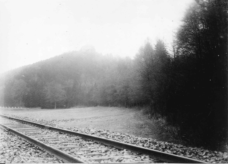 ![]() km 23,000: Trasse bei Schloss Arnstein, Südwestseite (Fotografiert in 1915 von Ernst Schlie / Sammlung Dr. D. Ahlborn) |